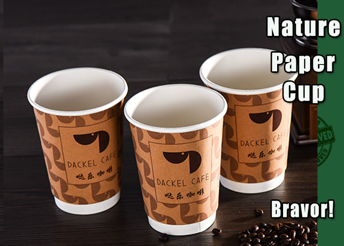 Kraft Double Wall Paper Biodegradable Coffee Cups Heat Insulation Offset Printing
